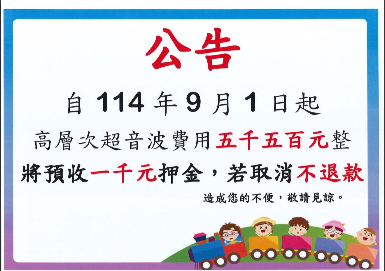 高層次超音波價格調整公告